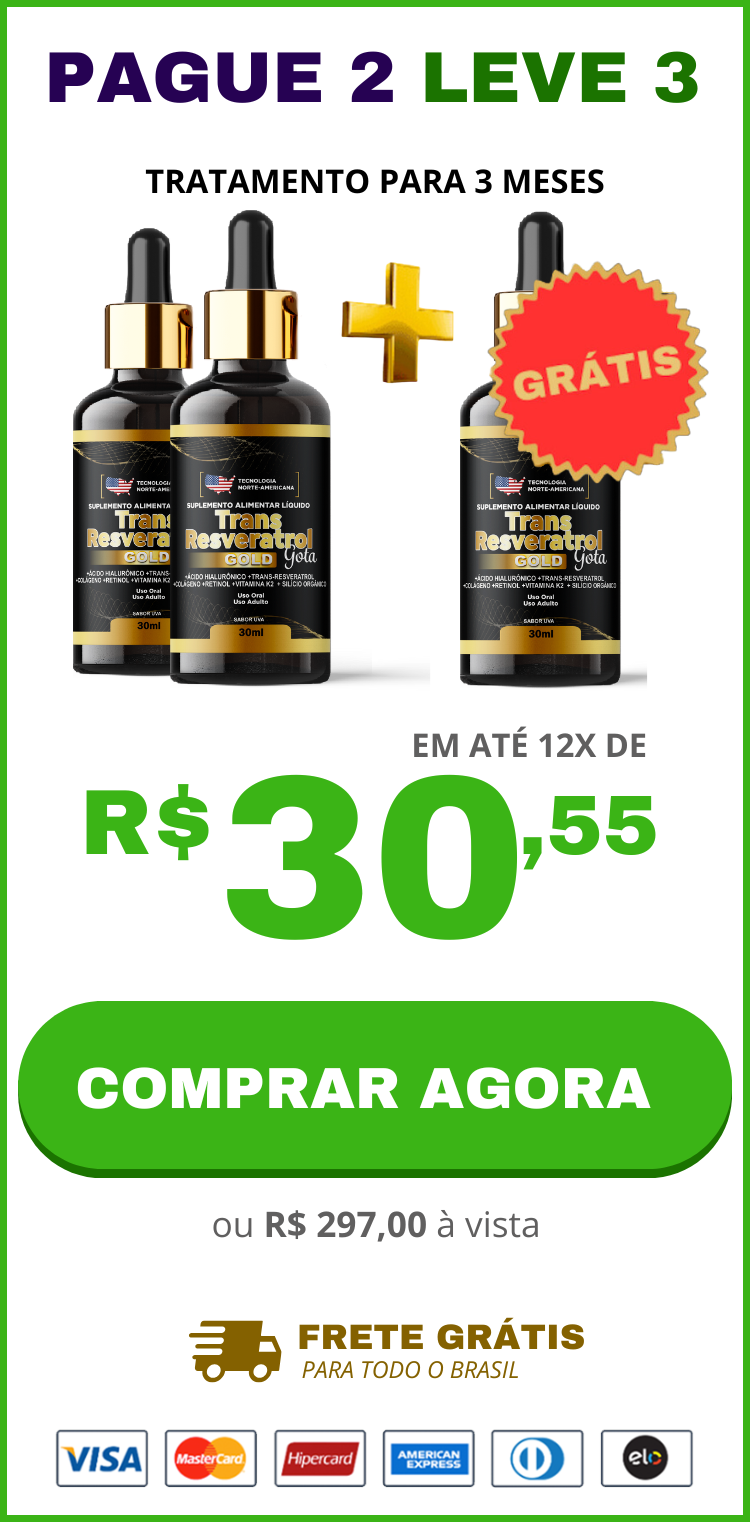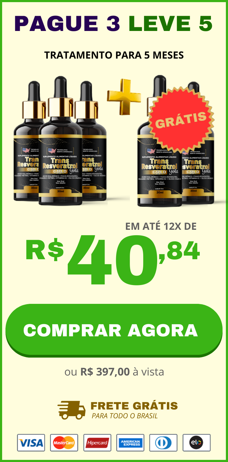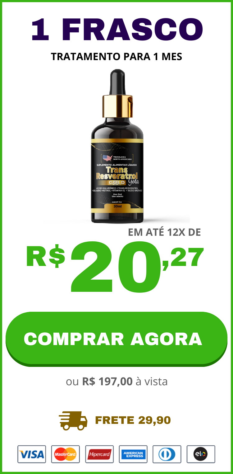 O tratamento Trans Resveratrol Americano + Vitamina K2 é aprovado pela ANVISA e possui uma fórmula exclusiva para eliminar as rugas, marcas de expressão, pés de galinhas e bigode chinês de forma natural. Várias marcas no mercado brasileiro estão se passando por TRANS RESVERATROL AMERICANO, só que não fornecem resultados esperados para os clientes, então saiba que se você usar um produto realmente americano suas rugas e marcas de expressão literalmente desapareceram em no máximo 90 dias!